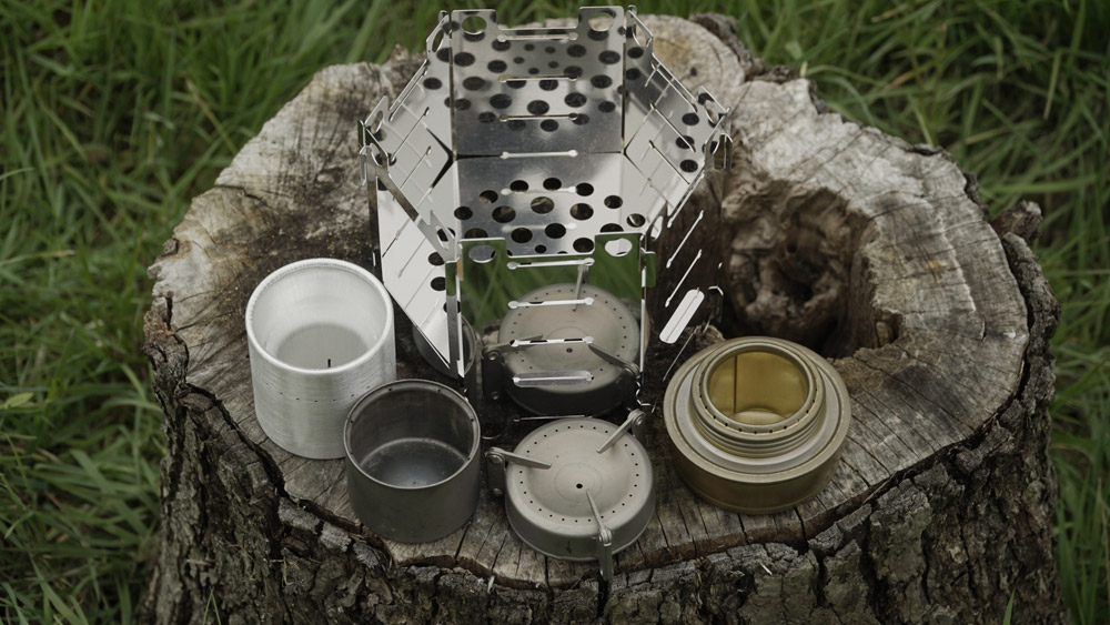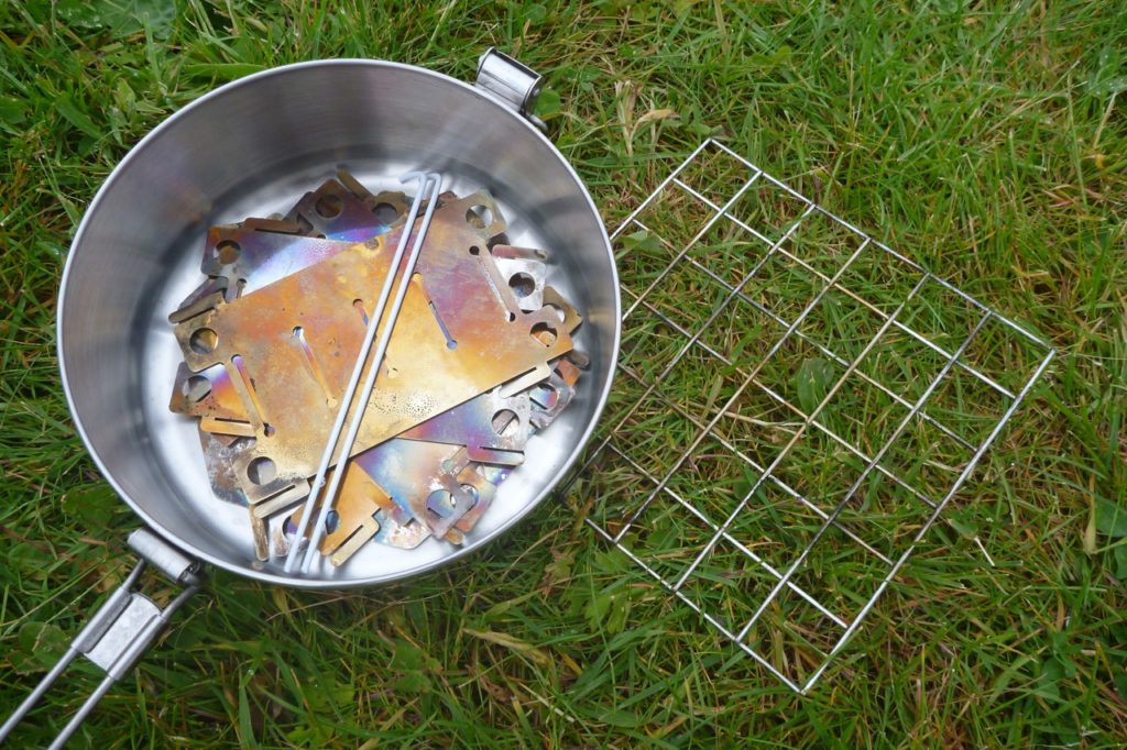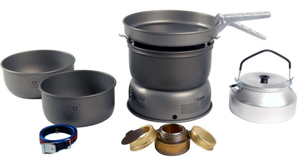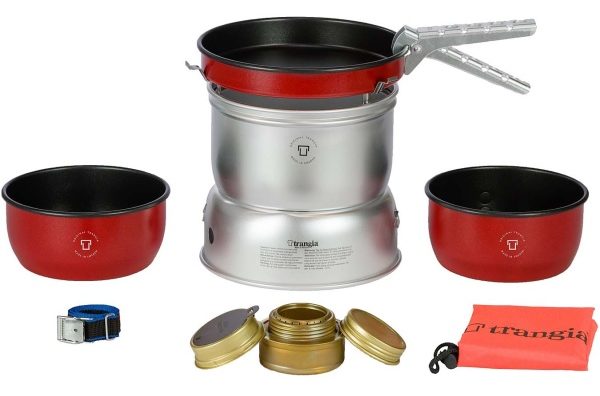 Pilihan terbaik dengan peralatan yang diperluas. Set termasuk: panci, wajan, sendok, sendok, spons untuk mencuci set, piring, tas kain untuk packing. Harga: 1600 rubel.