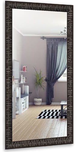Model persegi panjang lain dari pabrikan terkenal dirancang untuk dipasang di lorong ruang tamu dan bahkan di kamar mandi. Bingkai hitam terbuat dari MDF, yang ditutupi dengan lapisan tahan kelembaban khusus. Lebar bingkai 3,8 cm, dimensi kanvas 45x90 cm, ketebalan produk 3 cm.