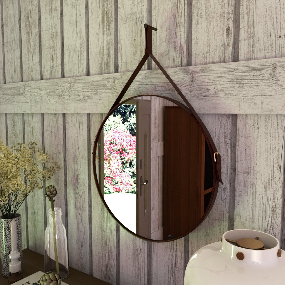 Ikat pinggang terbuat dari kulit asli, modelnya diproduksi dalam beberapa warna tali: hitam, coklat dan putih. Diameter produk - 65 cm, ideal untuk dipasang di lorong, ruang tamu, atau kamar mandi. Pabrikan memberikan jaminan untuk produknya hingga 10 tahun.