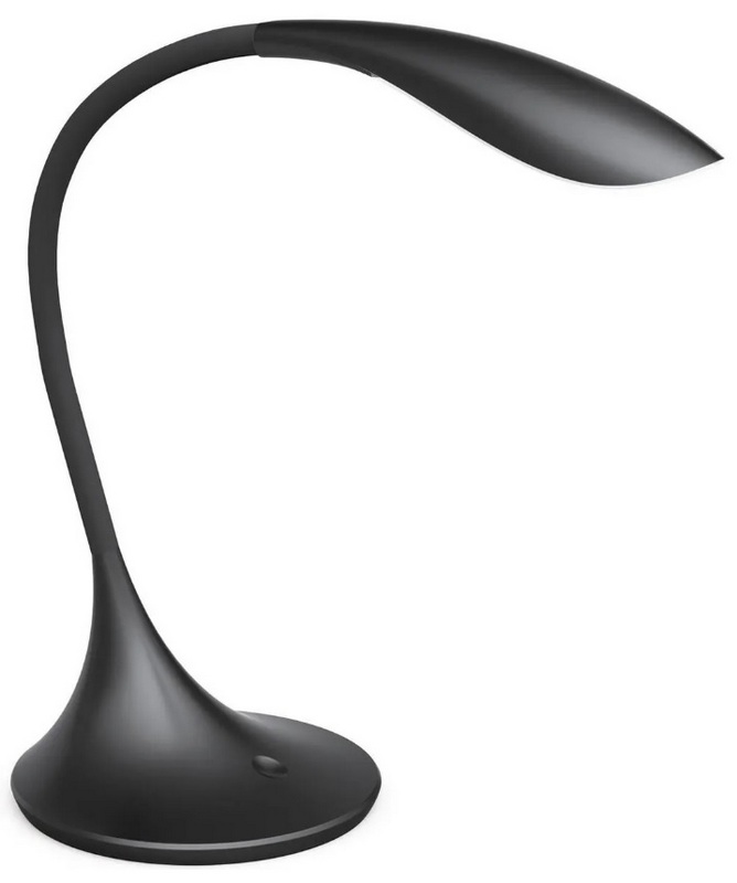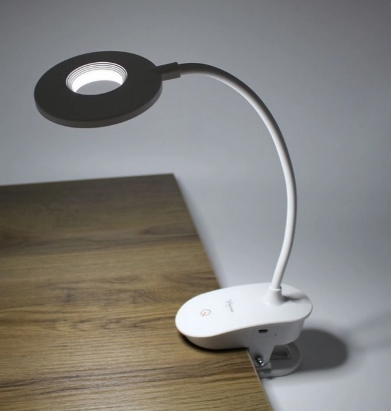 Model ini memiliki kaki fleksibel yang terbuat dari paduan tahan lama dengan lapisan silikon yang nyaman disentuh. Elemen lainnya terbuat dari plastik ABS yang tahan lama dan kuat.Kaki lampu telah diuji di laboratorium, di mana bahkan setelah 10.000 tikungan, ia mempertahankan semua kemampuan teknis dan penampilannya. Perangkat ini dilengkapi dengan 60 LED dengan suhu cahaya berbeda (30 dengan cahaya hangat dan 30 dengan cahaya dingin, yang dipasang secara bergantian), dimungkinkan untuk menyesuaikan suhu cahaya dalam batas 2700K-6500K (Batas lebar). LED berkualitas tinggi memiliki indeks rendering warna (Ra) 88 yang sangat baik. Untuk menciptakan penyebar cahaya yang merata, bahan filter cahaya digunakan untuk membantu mengurangi jumlah cahaya biru yang dipancarkan. Biaya yang disarankan untuk rantai ritel adalah 2.500 rubel.
