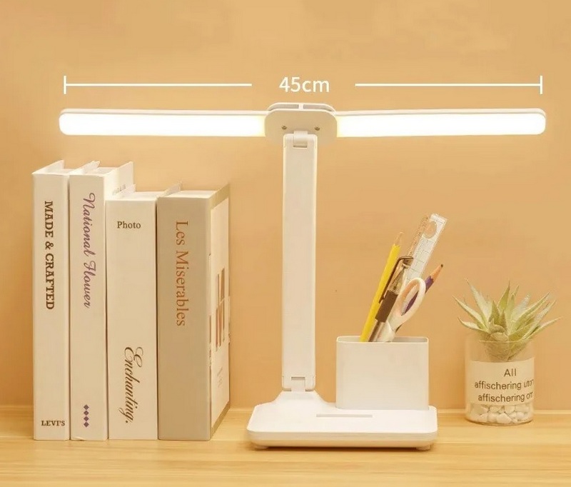 Lampu LED ini juga merupakan pengatur meja untuk alat tulis, dianggap sebagai solusi ideal untuk belajar dan bekerja. Lampu meja memiliki 2 area pencahayaan dan 6 pengaturan daya. Dapat bekerja baik dari jaringan, dan dari akumulator baterai. Organizer juga dapat digunakan untuk menyimpan uang receh di atas meja, dan juga dapat digunakan sebagai dudukan telepon. Biaya yang disarankan untuk rantai ritel adalah 1.300 rubel.