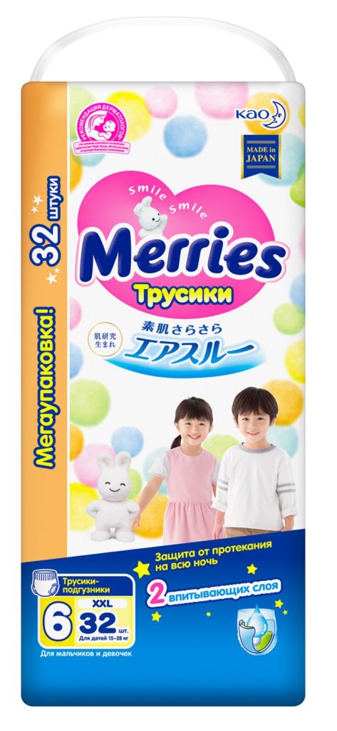 Celana dalam hypoallergenic buatan Jepang. Menjaga kulit bayi tetap kering untuk waktu yang lama. Lapisan pelindung menyerap kelembaban dan tidak bocor, bahkan dengan aktivitas kuat bayi dalam mimpi. Parameter anatomi cocok untuk anak perempuan dengan berat hingga 28 kg. Harga: 1299 rubel.