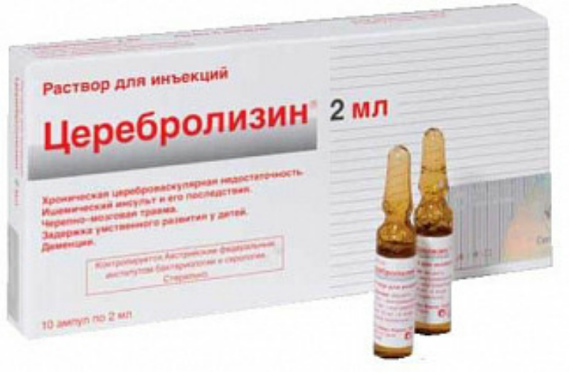Komposisinya meliputi peptida yang diperoleh dari otak babi. Paling sering diresepkan untuk pelanggaran sirkulasi serebral, dengan stroke, dengan konsekuensi WTC. Ini juga diresepkan untuk penyakit Alzheimer, keterbelakangan mental pada anak-anak. Harga: mulai 1050 rubel.