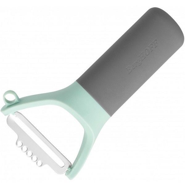 Zester memiliki dua bagian, terdiri dari 5 bilah untuk mengupas dan satu bilah untuk menghilangkan sedotan tebal atau keriting dari kulit jeruk. Desain asli dan produk unik dari BergHOFF dari seri Neo. Ini memiliki pegangan nyaman lembut non-slip yang terbuat dari plastik yang dilapisi dengan silikon. Panjang pisau putih abu-abu adalah 20,5 cm.