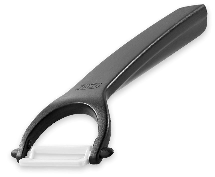 - bilahnya panjang, memungkinkan Anda untuk menghilangkan kulit tidak hanya dalam bentuk sedotan, remah-remah, tetapi juga dalam irisan tipis