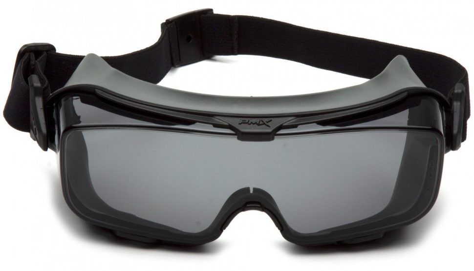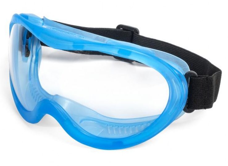 Ada ventilasi, sudut pandang besar, mudah dibersihkan. Terbuat dari bahan non-konduktif khusus. Dapat dikenakan di atas kacamata korektif. Bagus untuk orang dengan penglihatan yang buruk. Pita elastis yang dapat disesuaikan agar pas dengan aman.