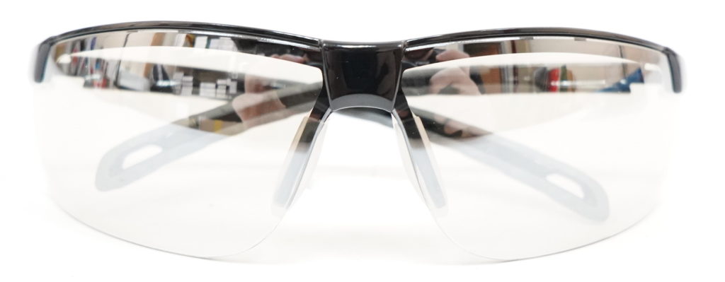 Lensa polikarbonat dengan transmisi cahaya 89% melindungi mata dari depan dan samping dari serpihan berkecepatan tinggi. Memberikan perlindungan dari sinar UVA, UVC, UVB.