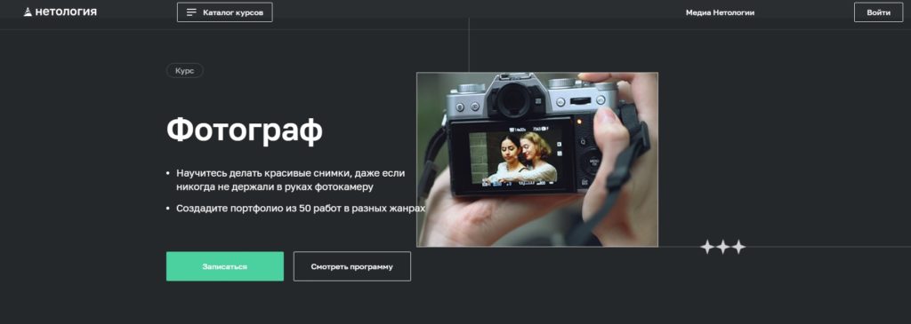 Durasi adalah 8 bulan. Profesional di bidang ini akan melatih fotografer masa depan. Pada akhir kelas, pengguna menerima portofolio. Akses ke semua file yang diterima tetap selamanya.