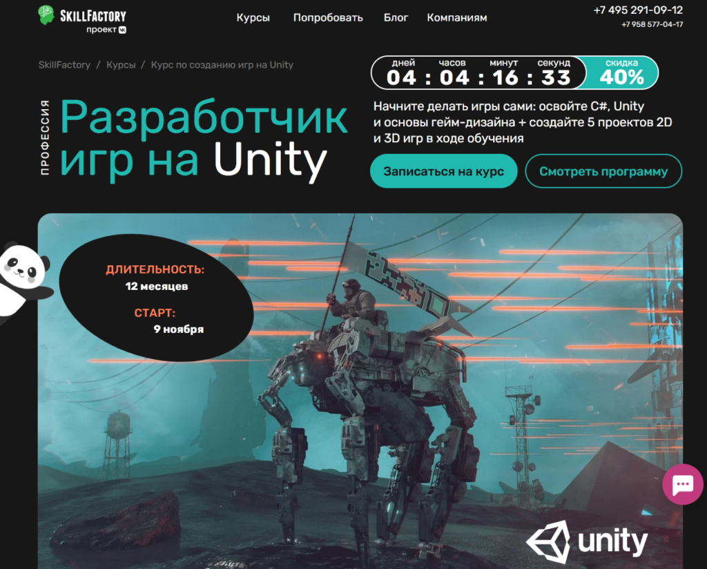 Di sini mereka mengajarkan cara membuat game dari awal, dari ide hingga peluncuran. Program ini ditulis dengan penekanan pada pemrograman dan secara bertahap berbicara tentang prinsip-prinsip menciptakan dunia virtual di Unity, mesin yang populer.