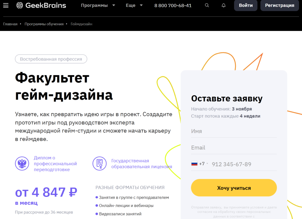 Berkat kursus ini, siswa akan menguasai profesi desainer game dari awal hanya dalam enam bulan. Program ini mencakup seluruh spektrum tugas utama seorang desainer game, mulai dari perumusan konsep hingga proses implementasi ide. Pada saat yang sama, spesialis masa depan akan belajar bagaimana mendistribusikan tugas di antara semua anggota tim proyek, serta menerapkan prinsip-prinsip dasar pemasaran dan meyakinkan calon investor tentang keberhasilan produk jadi.