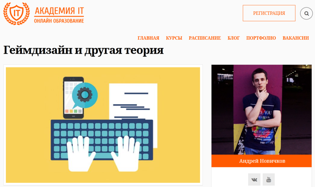 Blok pertama - "Desain Game" mengajarkan teori desain game, prinsip-prinsip keseimbangan game, bekerja dengan dokumentasi, teknik praktis, alat pengembang, dan semua ini menggunakan contoh nyata dari game paling terkenal dan populer.