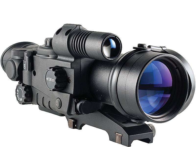 Pada saat yang sama, model yang disajikan memiliki nuansa optiknya sendiri. Pertama-tama, ukuran jarak pengamatan maksimum yang lebih kecil (100 meter), yang tidak terlalu mempengaruhi penggunaan malam hari, tetapi tidak cocok untuk kasus bertemu hewan pemangsa yang berbahaya bagi manusia, seperti beruang. Diameter lensa mata perangkat adalah 50 mm. Tidak seperti pemandangan 3x60, pemandangan ini memiliki perbesaran yang lebih kecil, tetapi sudut pandang yang sedikit lebih besar (13 bukannya 11 derajat).
