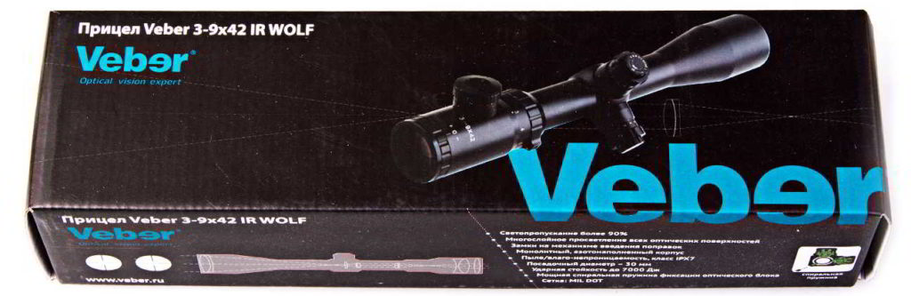 Veber PO 3-9×42 IR WOLF adalah model pemotretan pendekatan serbaguna. Perangkat ini dilengkapi dengan housing tahan air logam (aerospace aluminium alloy) (kelas perlindungan IPX7). Tabung memiliki permukaan matte dengan diameter tengah 30 mm. Penglihatan memberikan peningkatan yang mulus dari 3x ke 9x, diisi dengan nitrogen untuk mencegah lensa berkabut.