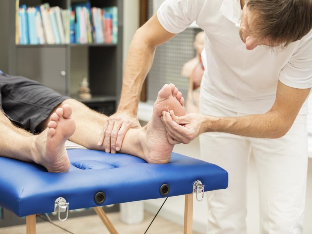 Di bawah pengawasan dokter berpengalaman, pasien menjalani rehabilitasi setelah cedera.