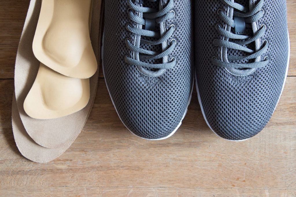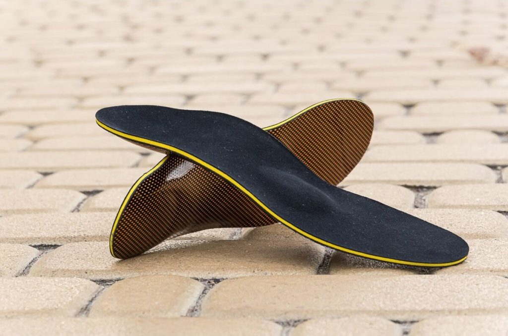 Sol yang digunakan untuk kaki datar melintang memiliki bantalan, roller untuk memisahkan jari dan detail yang mengoreksi posisi tumit.
