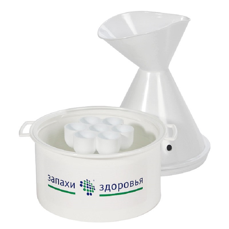 Set lengkap, selain perangkat, termasuk keberadaan gelas ukur dan dua nozel: untuk wajah dan aromatisasi.Berat inhaler adalah 550 gram, bertenaga listrik. Harganya mulai dari 900 rubel.