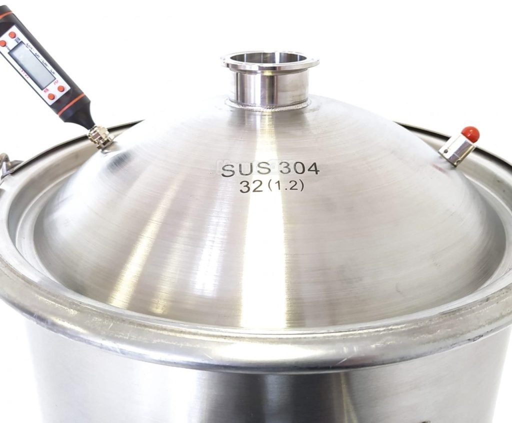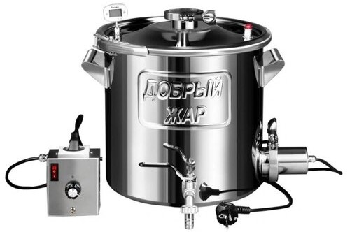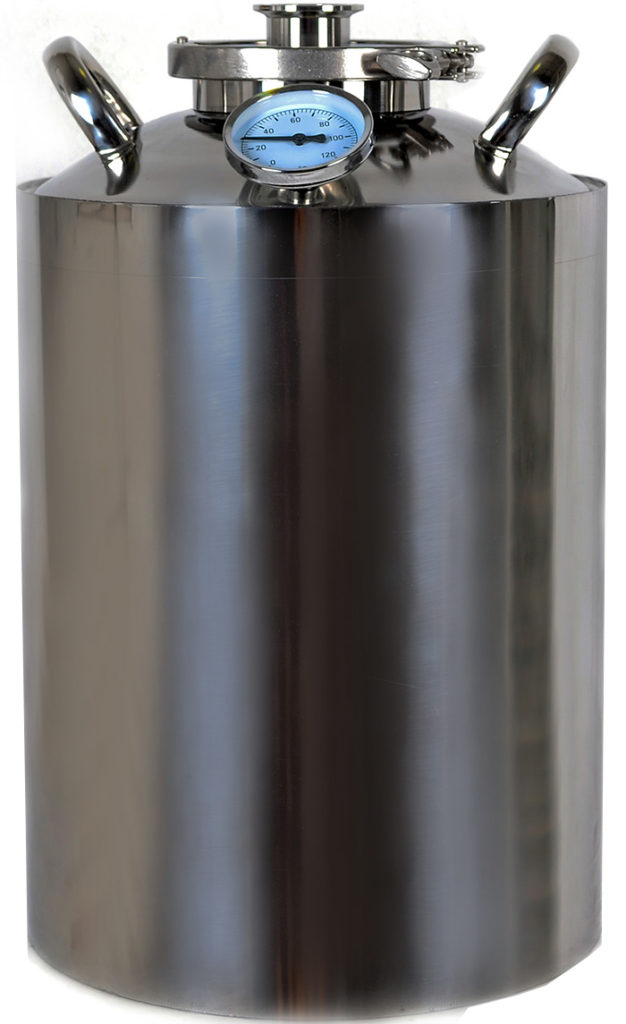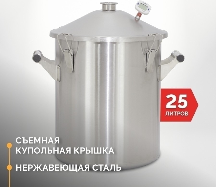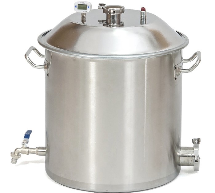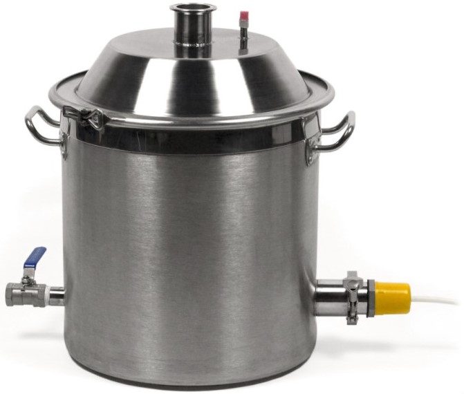 Cocok untuk dipasang pada mesin nabati dengan sambungan klem 1,5". Katup ledakan pada tutupnya menjamin keamanan dalam pengoperasian. Mulutnya lebar, dengan tsarga yang dilas. Keran terletak di dasar tangki. Bagian bawah kompatibel dengan semua jenis permukaan pemanas. Volume: 30 liter. Harga: 8290 rubel.