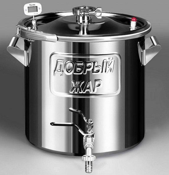 Modelnya terbuat dari plastik food grade yang aman, dengan tambahan tulang rusuk yang kaku. Cocok untuk hampir semua foto nabati. Bagian bawahnya tebal, dicap, bisa digunakan untuk semua kompor. Katup pelepas tekanan pada 1,5 atm. Volume: 35 liter. Termometer presisi tinggi pada penjepit puting. Harga: 8540 rubel.