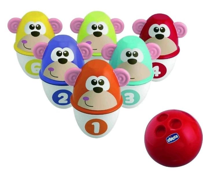Mainan tahan lama yang dibuat dengan indah tidak takut gundukan dan jatuh. Hal ini memungkinkan dua pemain untuk bermain sekaligus, yang mengembangkan keterampilan komunikasi.Komposisinya meliputi enam pin, dibuat dalam bentuk monyet, dan satu pin bola.