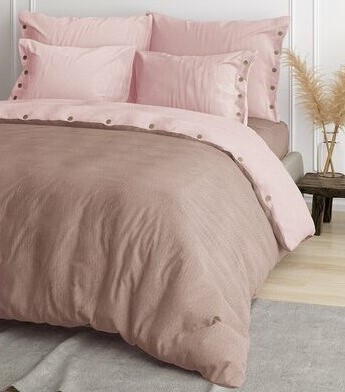 Terbuat dari bahan satin bergaris dengan kancing di bagian samping. Perusahaan ini menawarkan berbagai macam warna yang dapat dipadukan dengan semua jenis sprei. Kepadatan kain: 125 gr/sq.m. Biaya rata-rata: 2.160 rubel.