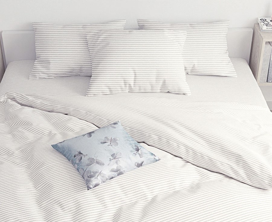 Modelnya terbuat dari satin bergaris, yang memiliki ketahanan aus dan elastisitas yang tinggi. Menghilangkan penyusutan saat dicuci dalam mode yang direkomendasikan. Pendekatan yang tidak biasa dalam bentuk garis-garis kain mengkilap dan matte yang bergantian mendiversifikasi gambar sprei yang biasa. Ukuran: 175x215 cm Gesper: kancing. Harga: 1390 rubel.