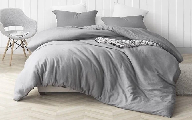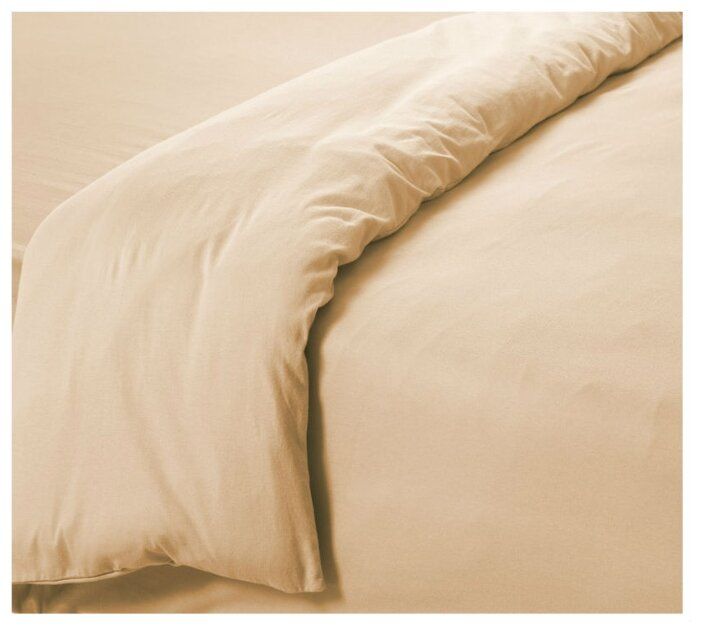 Versi rajutan untuk set 1,5 kamar tidur. Linen tidak perlu disetrika tambahan, tidak kusut. Kainnya enak disentuh, menahan panas dengan baik, nyaman digunakan di musim dingin. Ritsleting terletak di samping, tersembunyi, tidak mengganggu penggunaan. Warna krem. Harga: 1474 rubel.