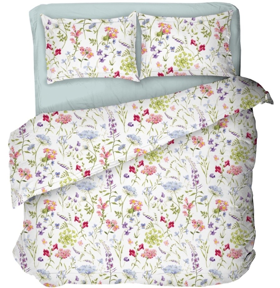 Versi percale yang indah, dengan kepadatan 110 gr/sq.m. Kainnya ringan, tidak pudar atau menyusut dengan penggunaan jangka panjang. Itu tidak membentuk pelet dan kait, hypoallergenic, tidak menumpuk listrik statis. Perusahaan ini memasok sprei berkualitas tinggi dengan biaya yang relatif rendah. Harga: 1065 rubel.