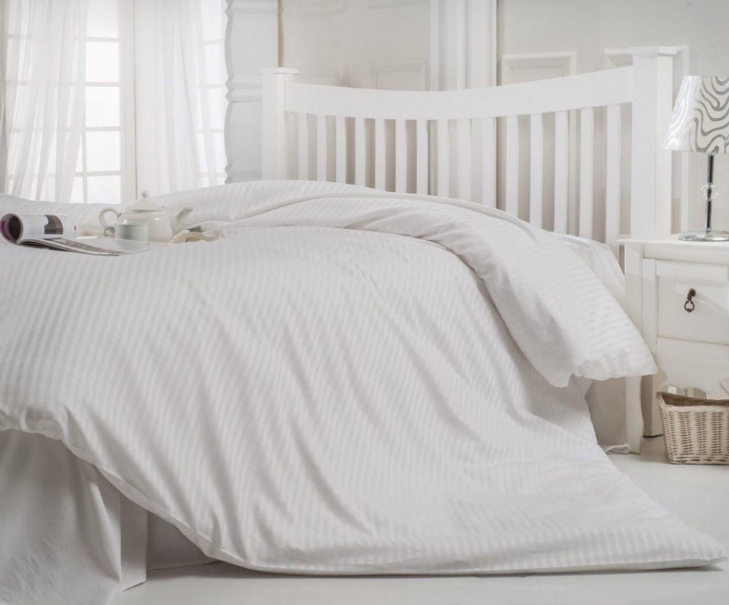 Versi alami poplin, lembut, tidak perlu disetrika, mempertahankan kecerahan warna dan tekstur kain untuk waktu yang lama. Anda dapat membeli dari pabrikan baik model terpisah maupun satu set: penutup duvet dan sarung bantal atau satu set penutup duvet berbagai warna. Mode cuci: hingga 40 derajat. Biaya: 1099 rubel.