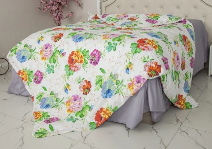 Kotak Emas menawarkan selimut penutup keluarga dalam warna musim semi yang cerah. Bahan mempertahankan panas di musim dingin dan memberikan sedikit kesejukan di musim panas. Kain: ranforce. Memiliki karakteristik operasional yang tinggi, tidak kehilangan kecerahan warna pada pencucian berulang. Ukuran: 200x220 cm Harga: 1150 rubel.