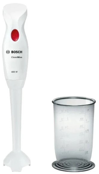 Pengagum merek Bosch dapat memilih model lain yang tidak kalah berharga. Terlepas dari kesederhanaan desainnya, kualitas Jerman juga tidak akan mengecewakan Anda. Model MSM14100 menarik dengan harganya. Gelas ukur sedikit lebih besar dari perwakilan sebelumnya dari "nama keluarga" yang terkenal ini. Volumenya 700ml. Bahan bodi dan bagian submersible terbuat dari plastik. Daya maksimum tidak melebihi 400 watt. Fungsionalitasnya jauh lebih sedikit di sini, tetapi untuk penggunaan sehari-hari cukup cocok, karena biayanya sangat rendah.