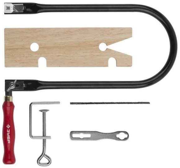 Jigsaw manual - desain sederhana dalam bentuk busur, dengan dudukan ujung untuk bahan habis pakai yang dapat diganti. Mata gergaji dari alat mekanis berbeda dari mata gergaji untuk gergaji listrik dalam hal pengikatannya. Ujung datar tidak memiliki pin ujung dan mudah diamankan dengan mur atau tuas di alur pahat arkuata.