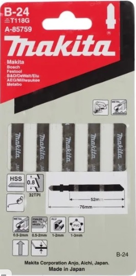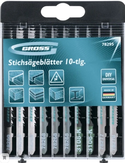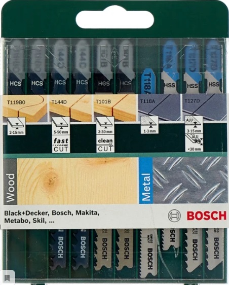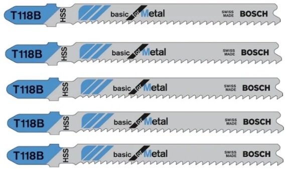 Bilah gergaji jigsaw untuk perkakas tangan dan listrik terbuat dari besi. Bilah baja konvensional dirancang untuk memproses bahan yang lunak dan kurang tahan lama. Tepi bergerigi tajam yang terbuat dari komposit bertulang memiliki berbagai fungsi dan memotong logam dan bahan baku lainnya.