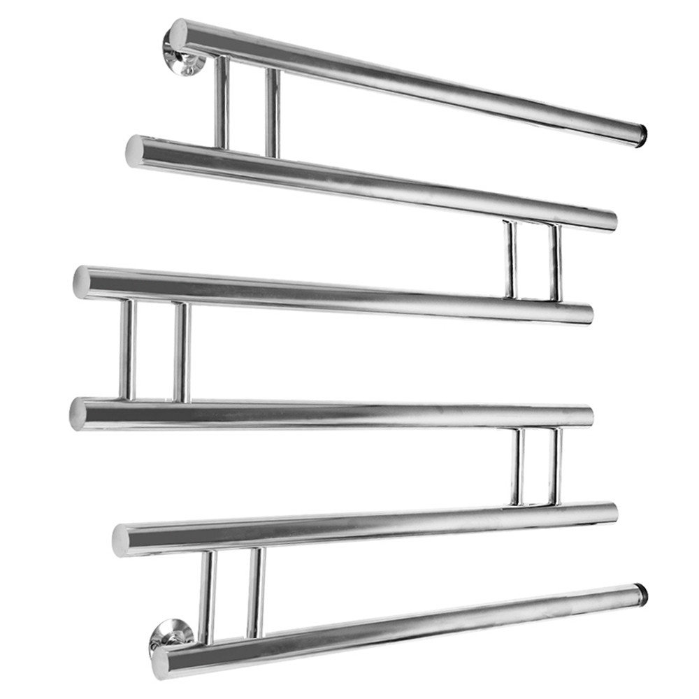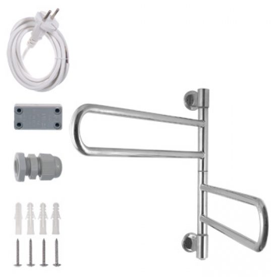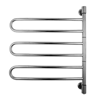 Penghangat handuk elektrik ini memiliki bagian yang dapat diputar 180° untuk mengakomodasi pakaian dengan ukuran berbeda. Ini memiliki kemungkinan koneksi tersembunyi dan terbuka.