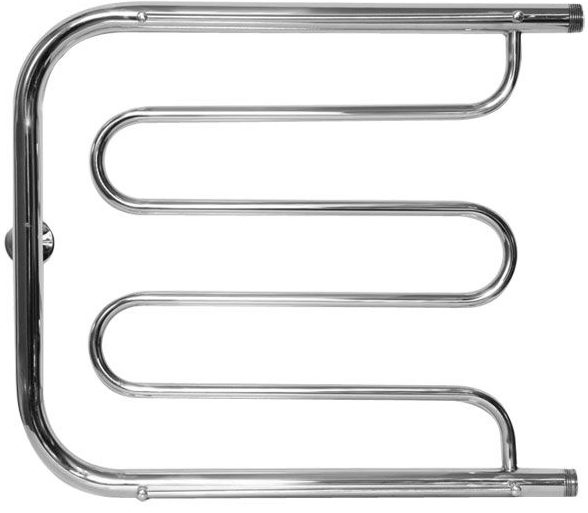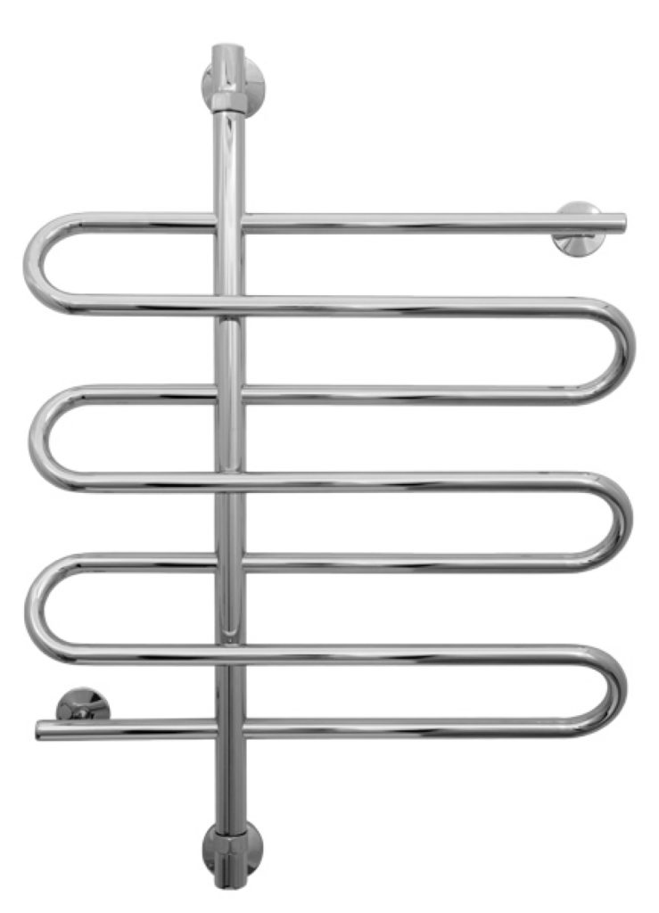 Tiang vertikal dari penampang melingkar dengan dua bagian termal dalam bentuk loop memanjang yang dapat berputar di sekitar bingkai sebesar 180 derajat, secara independen satu sama lain. Desain konstruksi dalam kombinasi dengan mekanisme putar membuat gantungan handuk berpemanas ini sangat diperlukan untuk kamar mandi kecil, karena memungkinkan Anda untuk menempatkan elemen tubuh sedemikian rupa sehingga tidak mengganggu pemiliknya.