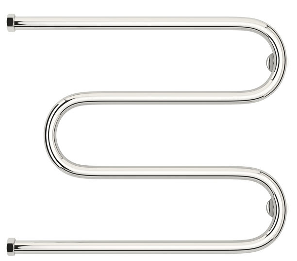 Perangkat ini berbeda dari yang lain dalam desain non-standar dan bentuk eksekusi non-standar. Ini memiliki jarak pusat 600 mm, yang tidak sesuai dengan dimensi standar di apartemen biasa.Rel handuk berpemanas seperti itu lebih sering dibeli pada tahap membangun rumah baru, yang memungkinkan Anda mempertimbangkan nuansa ini. Karena lebar pipa, produk memiliki berat yang besar - 9,3 kg.