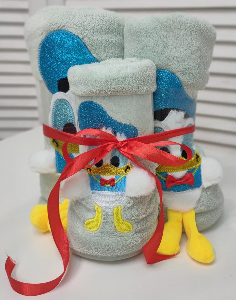 Handuk untuk anak dari bahan katun microfiber. Dikemas dalam box cantik berbentuk bebek. Hadiah yang sangat baik untuk setiap kesempatan. Dapat digunakan untuk taman atau rumah. Dengan karakter favorit Anda, anak akan senang mandi, mencuci, dan menyikat gigi. Biaya: 499 rubel.