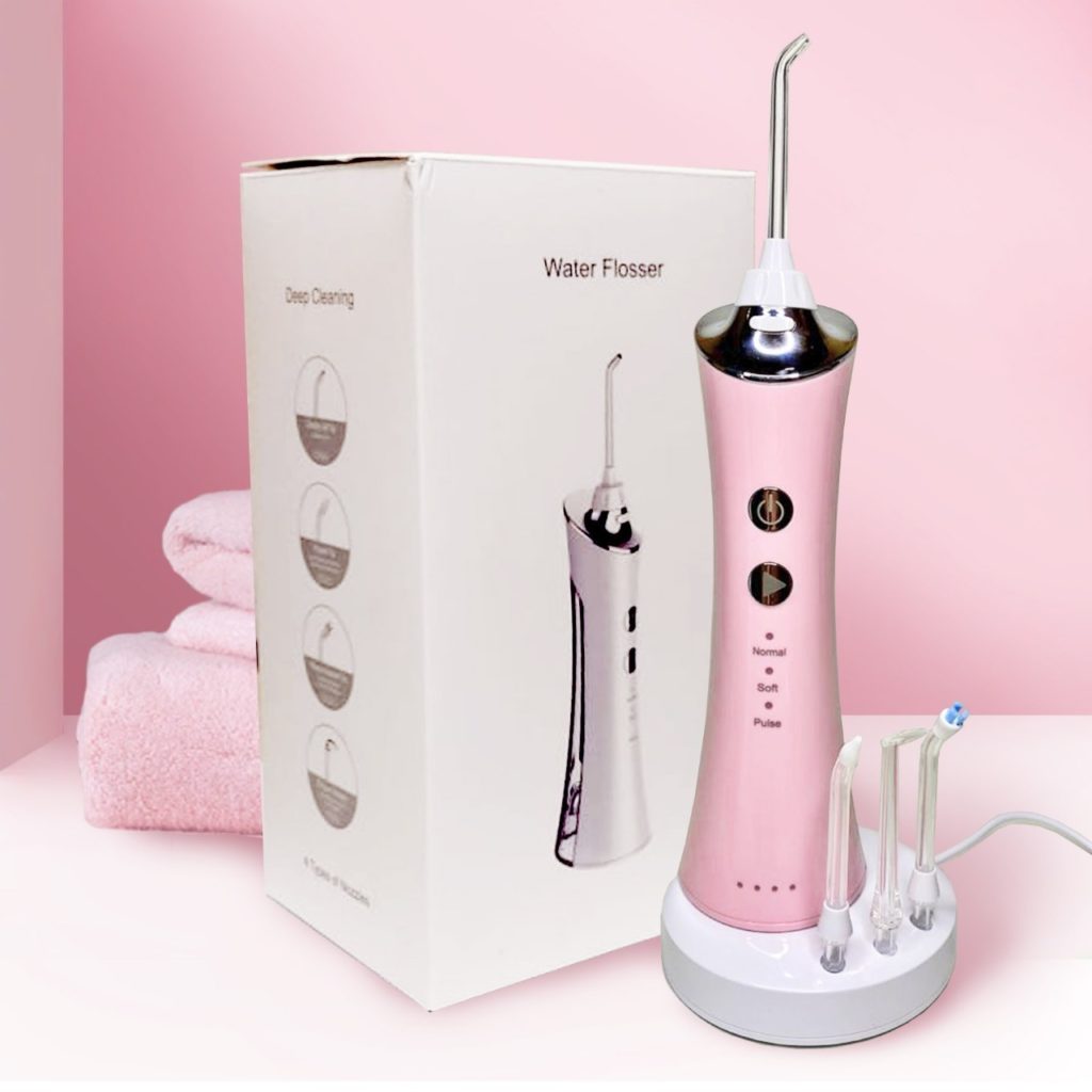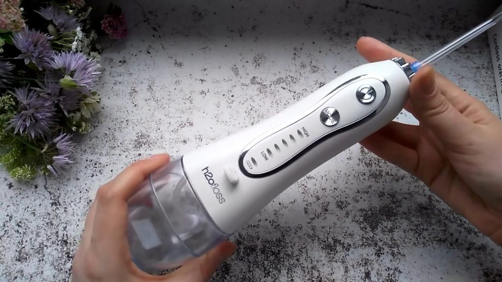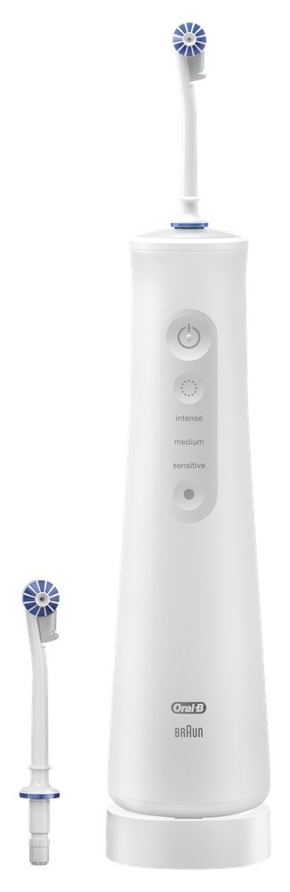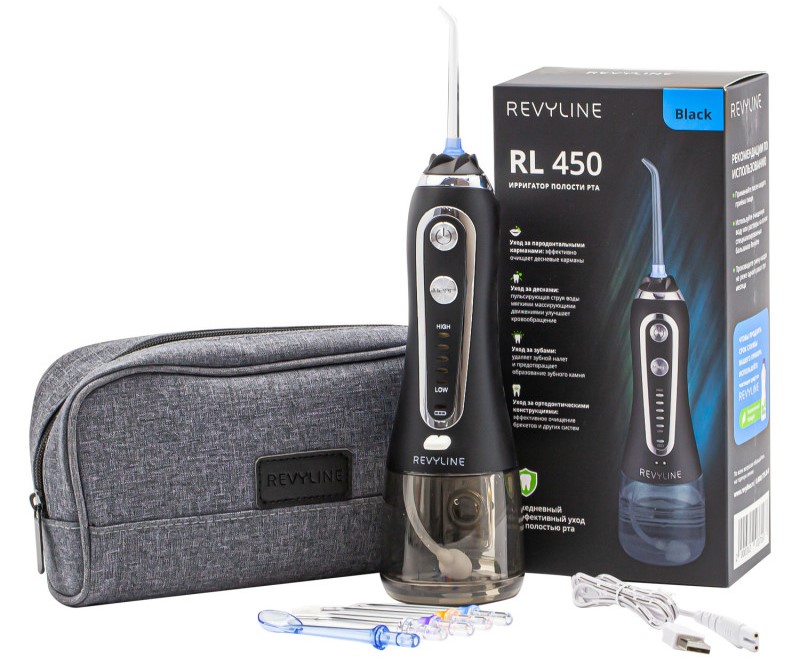 Irigator tanpa kabel, dengan penyesuaian langkah jet. Nosel ortodontik membersihkan kawat gigi dengan baik. Termasuk 4 nozel.Baterainya sendiri yang kuat menahan muatan untuk waktu yang lama. Ada pengisian USB. Biaya: 5900 rubel.