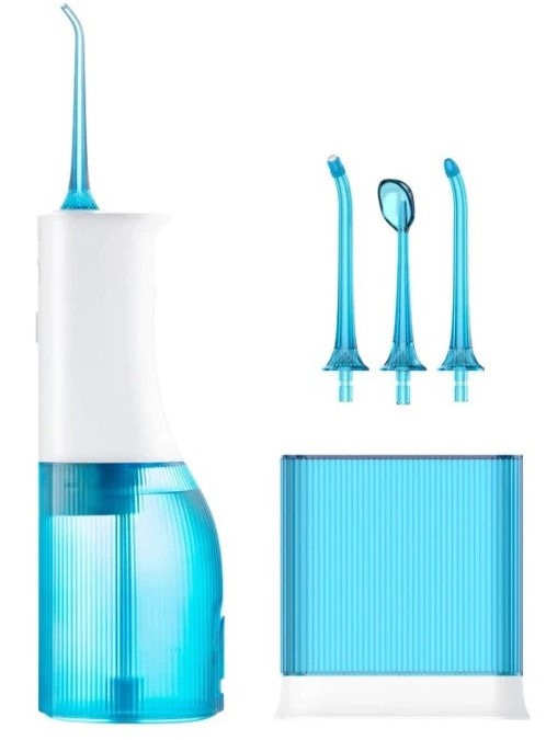 Model ini dirancang untuk membersihkan rongga mulut dari kotoran dan bakteri, baik untuk orang dewasa maupun anak-anak. Selain air, berbagai solusi gigi dapat digunakan. Termasuk 4 nozel yang dapat dilepas untuk mode pembersihan yang berbeda. Biaya: 5190 rubel.
