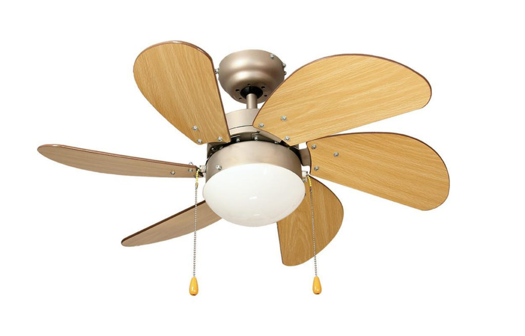 Kipas angin memiliki dimensi yang ringkas dan dapat digunakan di rumah. Dalam ruang kecil, itu akan melakukan pekerjaan dengan baik. Tetapi Anda dapat menginstal beberapa perangkat di kamar yang luas. Untuk pembuatan bilah (6 pcs.) Kayu maple digunakan, yang dipernis untuk melindunginya dari pengaruh eksternal.