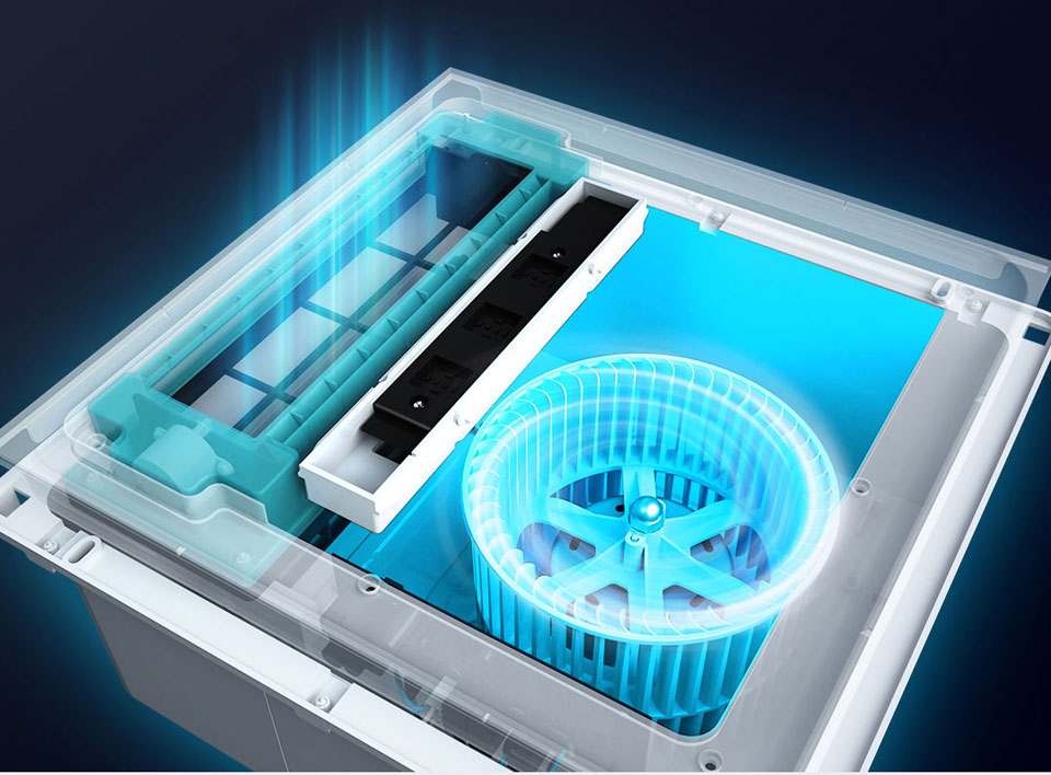 Dalam satu jam, perangkat dapat melewati 13,5 ribu meter kubik itu sendiri. udara. Pencapaian performa tersebut berkat baling-baling dengan diameter yang bertambah 142,2 cm dengan kekuatan perangkat mencapai 70W. Dengan bantuan hembusan dengan intensitas tinggi, perbedaan suhu berkurang jika AC digunakan bersama dengan perangkat. Ketika dicampur, massa udara memberikan iklim mikro yang sangat baik di semua titik ruangan.