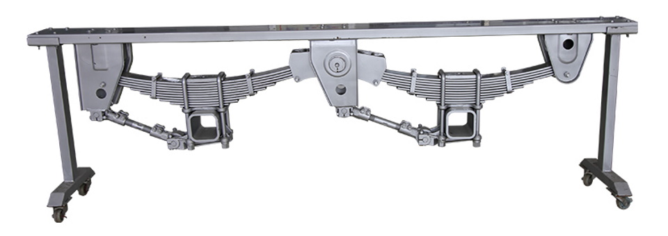 Dibandingkan dengan suspensi karet, suspensi peredam kejut pegas memberikan stabilitas arah yang lebih baik dan pengendaraan yang lebih lembut. Pada saat yang sama, pegas yang terlalu kaku mengurangi kehalusan, dan pegas yang terlalu lunak berkontribusi pada peningkatan penyaradan. Jumlah pelat di pegas bervariasi, tetapi pelat tiga daun paling sering digunakan.
