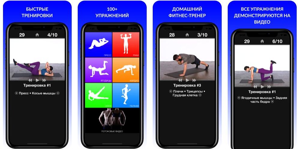 Ada kompleks untuk wanita hamil, cedera, video setiap latihan (langsung, tampilan lateral).