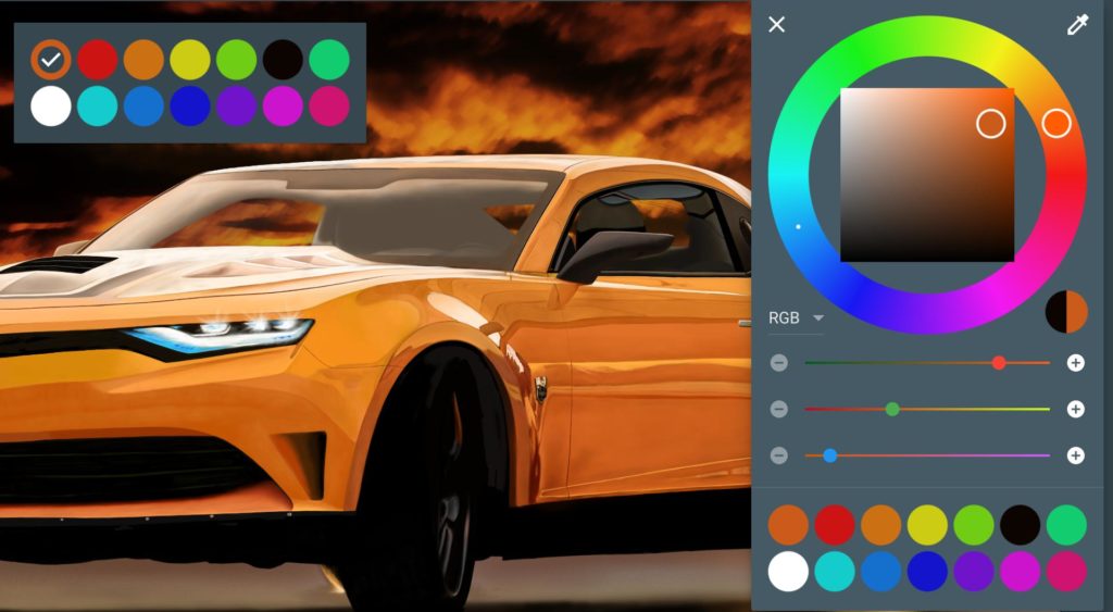 Karena stabilisasi otomatis, garisnya halus, dan filter bawaan Filter Gaussian (pemfokusan), penyesuaian HSB, RGB memungkinkan Anda untuk menyesuaikan saturasi, kecerahan warna. Anda dapat mengimpor gambar yang sudah jadi, mereka juga dapat bertindak sebagai sketsa.