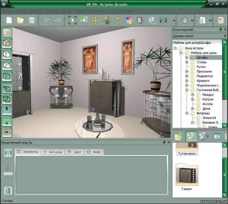 Astron Design adalah program komputer lain untuk desain interior. Perpustakaan tidak terlalu kaya akan barang, tetapi ada keuntungan yang jelas: setelah menyimpan hasilnya, Anda dapat mengirim pesanan ke pabrik furnitur.