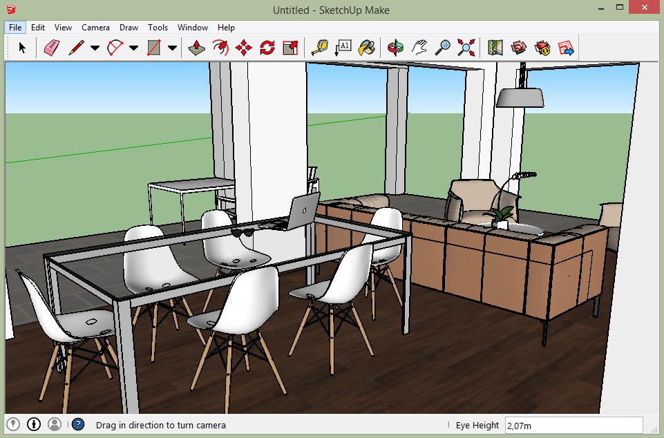 SketchUP dirancang untuk melakukan pemodelan 3D. Anda dapat mencoba program ini secara gratis, meskipun fungsi dan kemampuannya akan terbatas, proyek yang telah selesai akan disimpan dalam formatnya sendiri, yang tidak dapat diubah menjadi apa pun. Ini tidak terjadi pada versi berbayar.