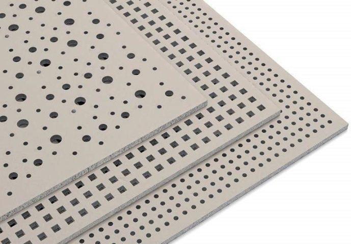 Ini digunakan dalam dekorasi dinding dan partisi untuk menciptakan insulasi suara yang baik di ruangan. Efek ini dicapai dengan melubangi struktur penutup, yang bagian belakangnya adalah kain non-anyaman khusus. Di dalam lubang, semua suara teredam.Drywall ini tersedia dalam warna apa pun, tetapi paling sering berwarna putih, abu-abu dan hitam, sehingga bahannya mudah dipilih untuk orientasi warna ruangan apa pun.