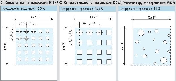 Dari sini dapat dipahami bahwa koefisien penyerapan suara tergantung pada jenis perforasi. Tetapi dengan ukuran dan bobot yang berbeda, seharusnya 0,2.