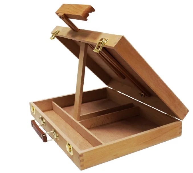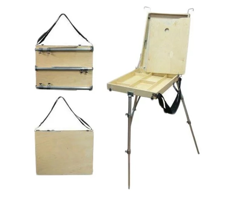 - tripod - desain yang sangat stabil dan ekonomis, tidak memiliki rak untuk aksesori dan dimaksudkan untuk melukis di ruang terbuka;