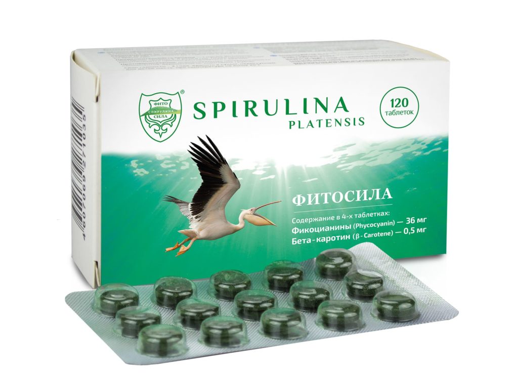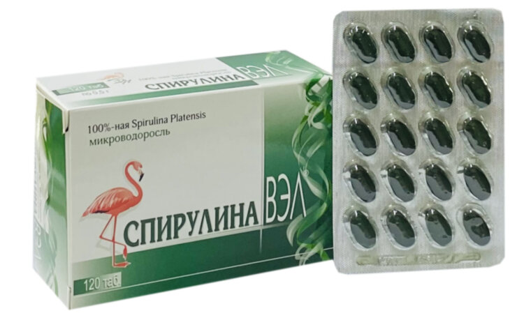 Berisi 0,36 g per tablet spirulina. Suplemen makanan digunakan sebagai suplemen vitamin untuk meningkatkan keadaan emosional, mengurangi kelelahan, dan memperkuat sistem kekebalan tubuh.
