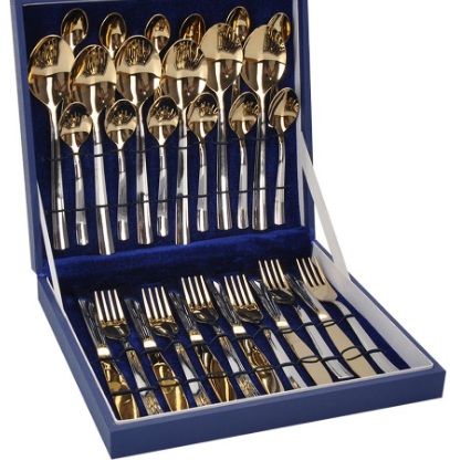 Produk ini cocok untuk setiap pembeli. Bahkan model yang murah akan menyenangkan mata dengan desainnya. Seluruh jajaran terbuat dari logam. Model yang lebih mahal dilapisi dengan titanium nitrida (warna keemasan).Produk dipasok dalam kemasan persegi panjang sederhana dengan atau tanpa lubang, dalam kasus dengan lapisan satin. Satu set dapat terdiri dari item satu tujuan (sendok teh) atau yang spesifik (misalnya, satu set untuk kue).